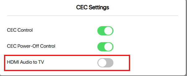 In order to successfully get your television speakers to play audio that is being transmitted from the receiver, it is necessary for you to enable the "HDMI Audio to TV" setting, which can be found under the General section followed by the CEC Settings.